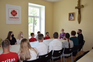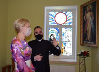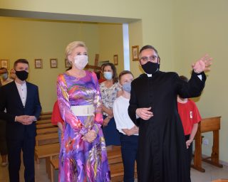 W piątek 26 czerwca 2020 r. Agata Kornhauser-Duda w Domu Miłosierdzia im. Jana Pawła II w Sokołowie Podlaskim spotkała się z osobami niepełnosprawnymi z Warsztatu Terapii Zajęciowej, z dziećmi ze świetlicy socjoterapeutycznej oraz z pracownikami Diecezjalnego Ośrodka Wsparcia Osób Niepełnosprawnych, wolontariuszami i pracownikami Caritas Diecezji Drohiczyńskiej.