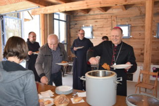 W uroczystościach udział wzięli ojcowie i siostry ze Wspólnot Jerozolimskich, którzy mają istotny wkład w budowę i rozwój Pustelni. Nie zabrakło również mieszkańców Poletył i okolic. Po Eucharystii uczestnicy mieli okazję spotkać się przy wspólnym posiłku. O to, aby nikt nie odszedł głodny, zadbał ks. Biskup, który rozdzielał przygotowany przez mieszkańców bigos.