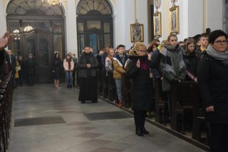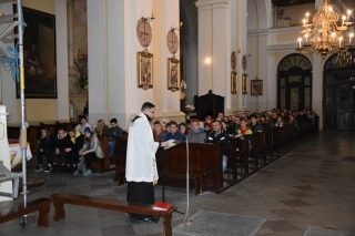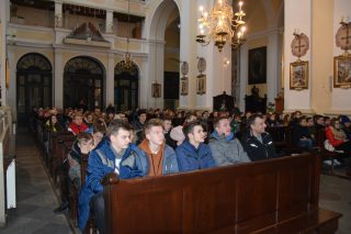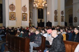 Młodzież w liczbie ponad 300-stu osób ze wszystkich trzech parafii węgrowskich (w tym par. św. Ojca Pio oraz św. Piotra z Alkantary i św. Antoniego z Padwy) przybyła do Bazyliki Mniejszej, aby przez cały dzień uczestniczyć w specjalnym spotkaniu modlitewnym, połączonym z konferencją i Eucharystią. Miejscowy wikariusz, ks. Grzegorz Konopacki oraz zaprzyjaźniony z parafią farną ks. Wojciech Ryczkowski przygotowali dla młodzieży bardzo ciekawy i bogaty w treści religijne program.