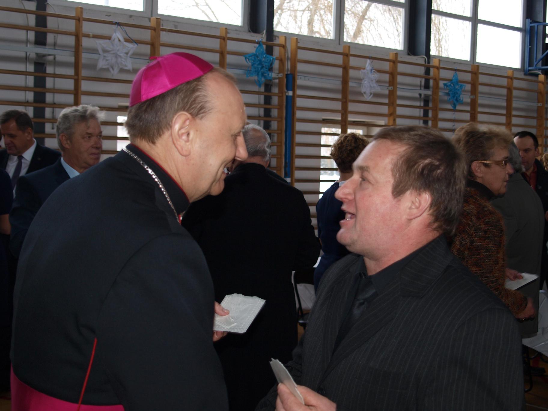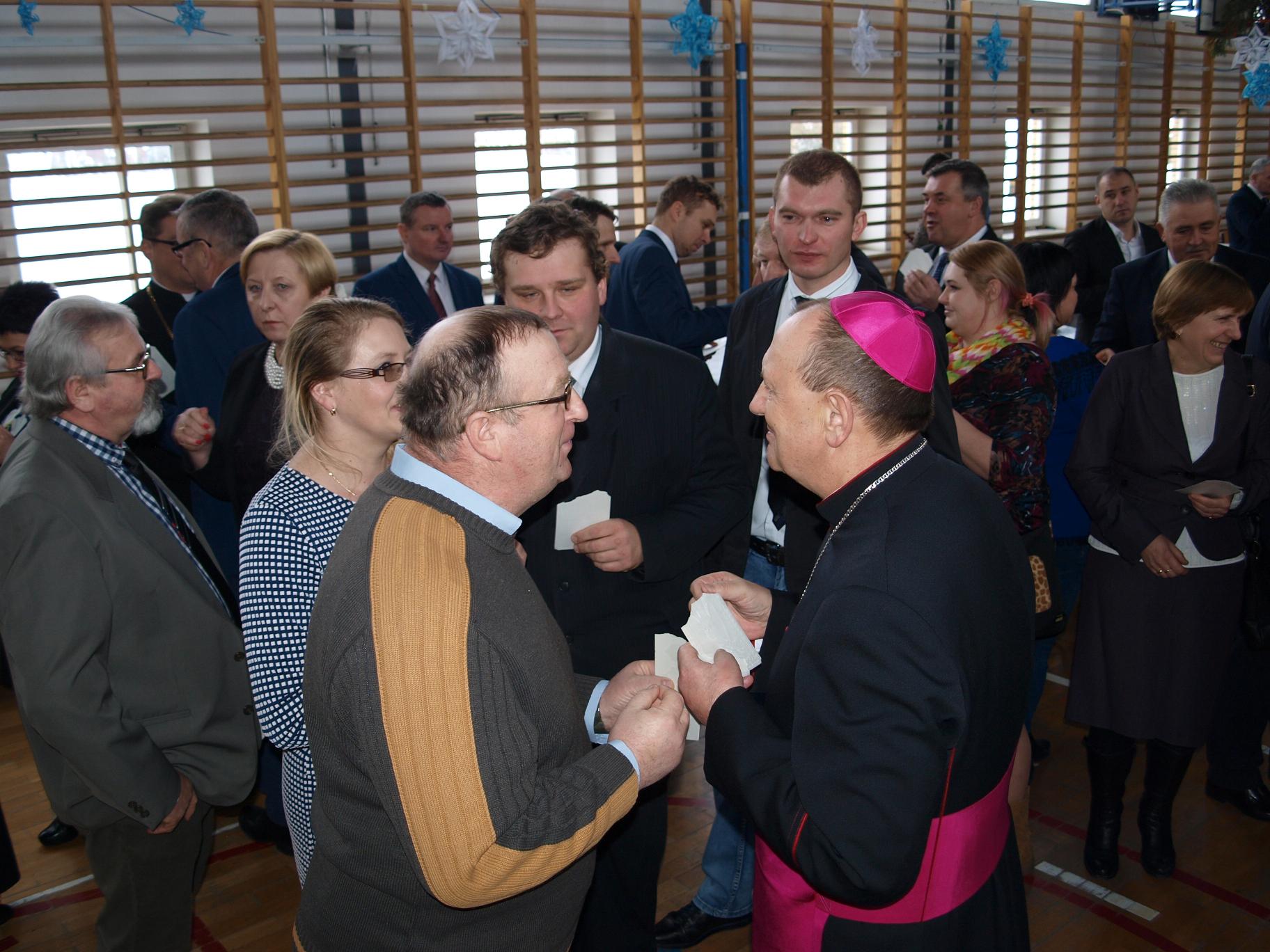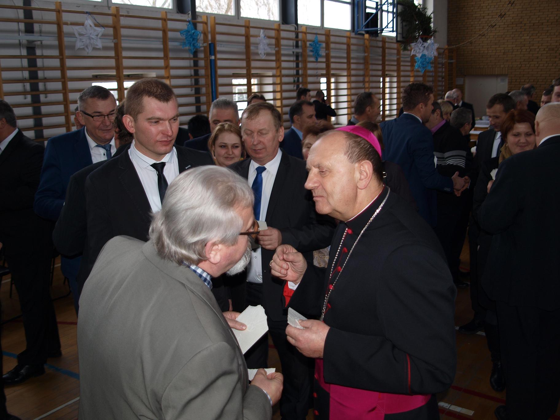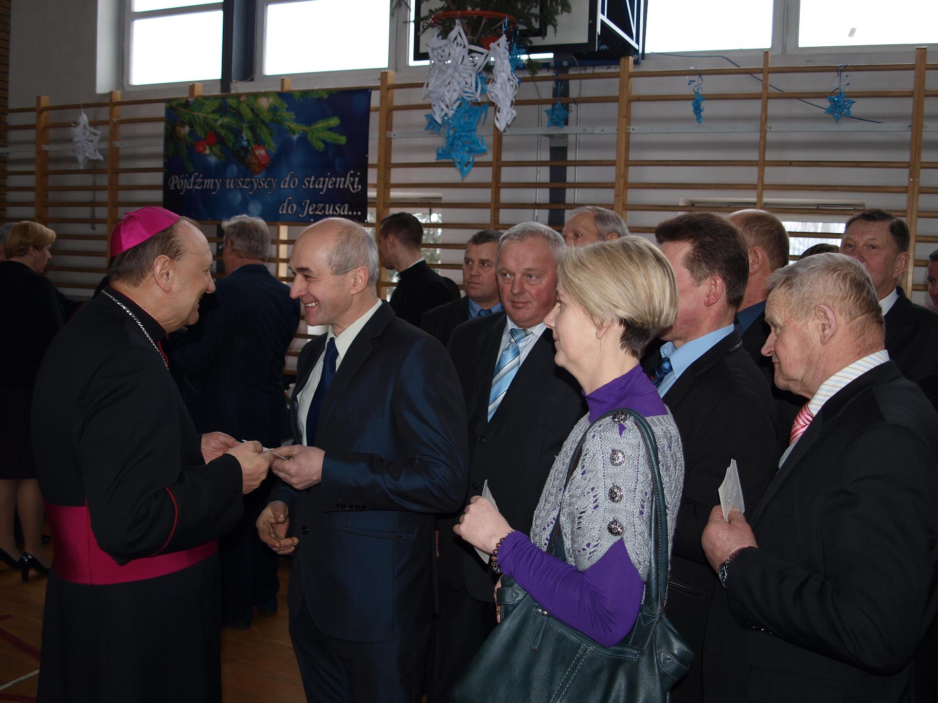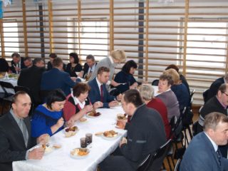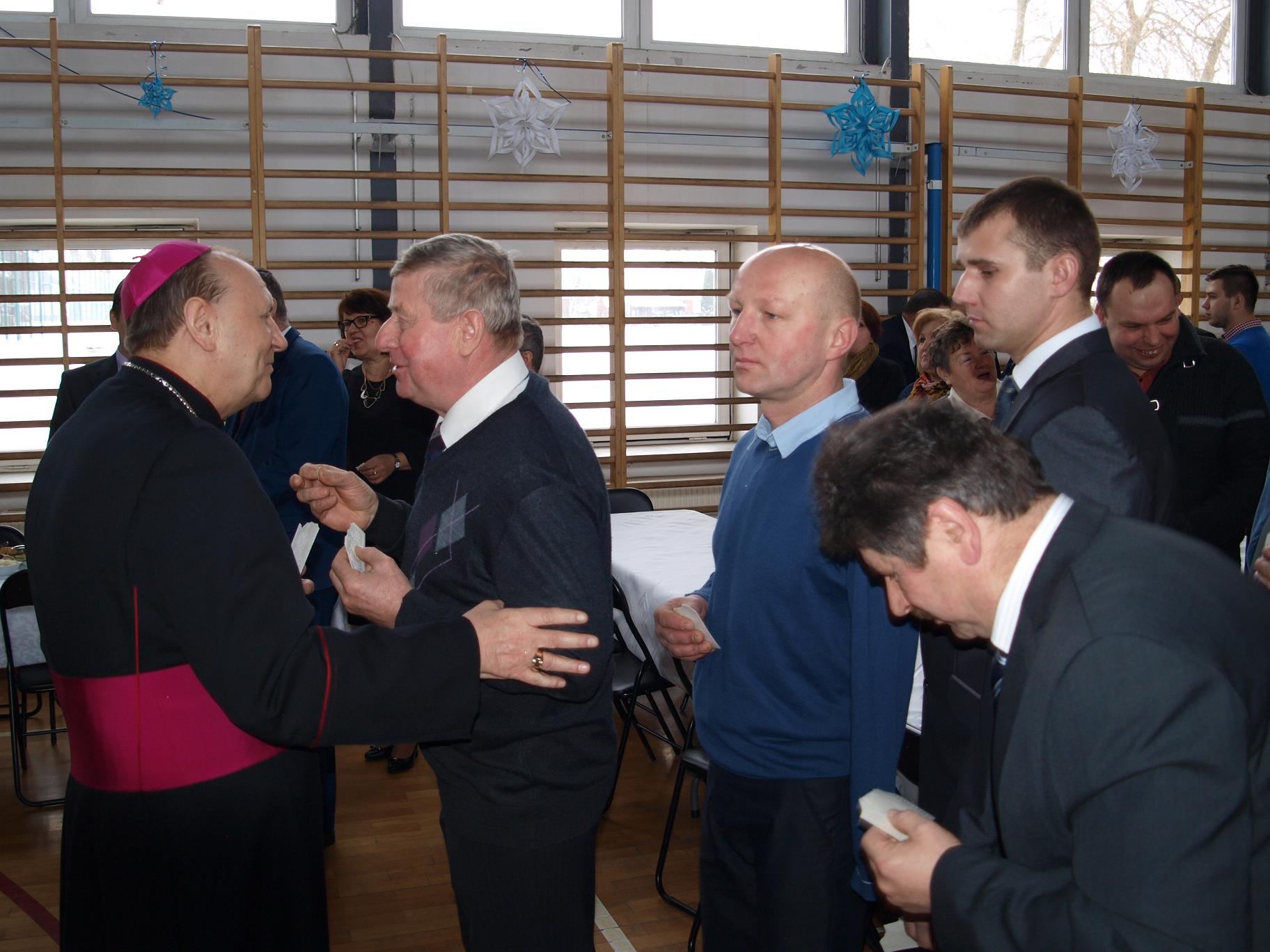 Na drugą część spotkania do pobliskiego Zespołu Szkół w Augustowie zaprosiła wójt Raisa Rajecka. W sali gimnastycznej przywitała przybyłych gości: ks. Biskupa, ks. dziekanów, współgospodarza proboszcza bielskiego ks. prał. Kazimierza Siekierko, ks. prał. Janusza Łoniewskiego – dziekana dekanatu brańskiego, ks. prał. Zbigniewa Niemyskiego – dziekana dekanatu hajnowskiego, włodarzy powiatu i miasta, wójtów, przewodniczącego Rady Gminy Bielsk Podlaski, radnych i drogich sołtysów.