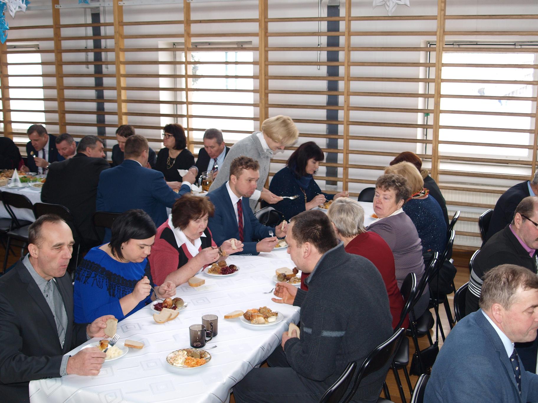 Nastąpił moment składania życzeń, po których wszystkich połączył posiłek przy wspólnym stole sponsorowany przez gospodarzy spotkania.