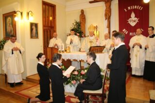 W wygłoszonej homilii ks. bp Tadeusz Pikus powiedział, że wszyscy są powołani do świętości, jednak niektórych Chrystus stawia na szczególnej drodze do niej prowadzącej, jaką jest życie zakonne. Powiedział, że osoba konsekrowana jest powołana do tego, aby płonąć ogniem Chrystusa i rozniecać go na innych. Nawiązując zaś do słów widniejących nad ołtarzem: „Z miłości dla miłości” – powiedział, cytując słowa drohiczyńskiego poety Lucjana Boruty, że: „Miarą wielkości jest miara miłości”.