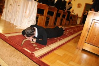 Przed złożeniem profesji, nad leżącą krzyżem siostrą Wiktorią, wezwano wstawiennictwa wszystkich świętych ze specjalną modlitwą celebransa. Było też uroczyste podpisanie na ołtarzu aktu oraz nałożenie obrączki, na znak zaślubin z Chrystusem.