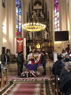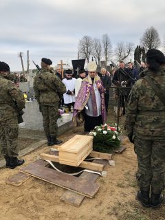 Mszy św. pogrzebowej przewodniczył ks. bp Piotr Sawczuk. Uroczystości towarzyszyła asysta honorowa Wojska Polskiego. W pogrzebie udział wzięli senator RP Waldemar Kraska, zastępca dyrektora Biura Upamiętniania Walk i Męczeństwa IPN Joanna Piskorz, archeolog Biura, który nadzorował prace ekshumacyjne – Piotr Kędziora-Babiński, burmistrz miasta Jan Słomiak, dyrekcje szkół wraz z pocztami sztandarowymi, kombatanci, strażacy, harcerze, parafianie.