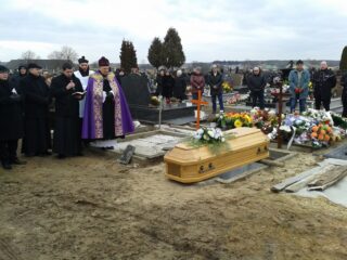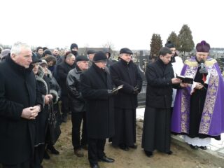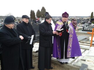 Po nabożeństwie orszak pogrzebowy wyruszył na cmentarz grzebalny w Perlejewie, gdzie zostały złożone doczesne szczątki ks. Kazimierza Zalewskiego. Siostra zmarłego, Halina, nie kryjąc wzruszenia, podziękowała ks. Biskupowi Pikusowi za odprawienie Mszy świętej pogrzebowej i wszystkim za przybycie i udział w uroczystościach pogrzebowych brata Kazimierza.