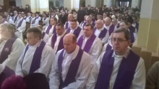 W swoim słowie bp senior Antoni Dydycz przywitał wszystkich przybyłych na uroczystości pogrzebowe, księży, siostry zakonne, parafian, liczne poczty sztandarowe i służby mundurowe. Z ks. Tadeuszem współpracowali od momentu powstania diecezji drohiczyńskiej.