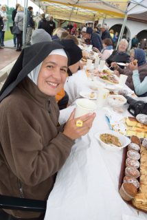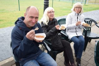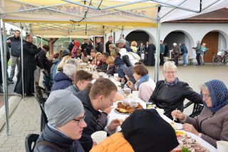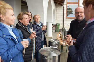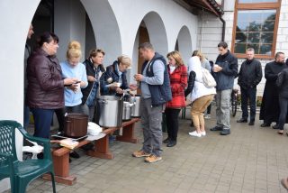 Dzięki gościnności i uprzejmości parafian, uczestnicy spotkania mogli posilić się ciepłym posiłkiem. Przy wspólnym stole nie zabrakło wspomnień pielgrzymkowych oraz zapewnia, że już przyszłym roku wszyscy spotkają się na pątniczym szlaku.