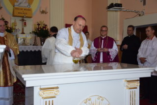Staraniem obecnego proboszcza – ks. Adama Parzonki oraz parafian z białego marmuru wykonano ambonę oraz posoborowy ołtarz. Fakt ten stał się bezpośrednią okazją do poświęcenia kościoła. Na zakończenie uroczystości dziekan węgrowski ks. prał. Leszek Gardziński odczytał dekret ks. Biskupa dokumentujący poświęcenie świątyni. Pod jego treścią podpisali się obecni kapłani: ks. prał. Leszek Gardziński, ks. kan. Marek Matusik, ks. kan. Zbigniew Grabowski, ks. Jarosław Górski, ks. Adam Banaszek, ks. Adam Parzonka, członkowie Rady Parafialnej, przedstawiciele parafii, młodzieży i dzieci.