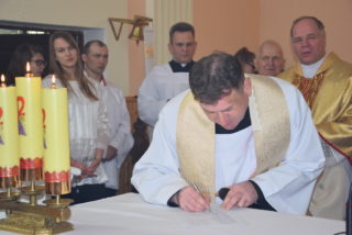 Ks. bp Tadeusz Pikus 22 kwietnia 2018 r. dokonał poświęcenia kościoła w parafii św. Antoniego Padewskiego w Ugoszczy.