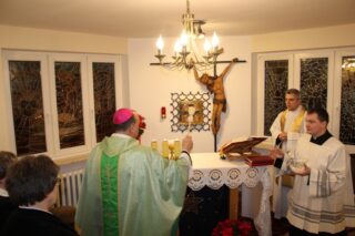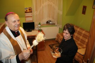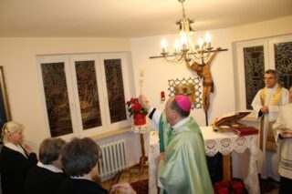 Ksiądz biskup odwiedził też z kolędą pokoje sióstr i inne pomieszczenia, zarówno w nowej, jak też przebudowanej dawnej części domu.
