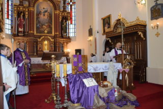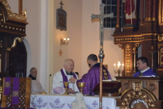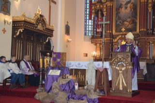 W homilii ks. Biskup przypomniał, że wiara w Boga jest osobistą decyzją człowieka, aby przyjąć Go do swojego życia. Jednakże uwierzyć i zachować wierność Bogu, to są czasami dwie różne rzeczywistości. Wiara, wierność oraz miłość są oznakami, że wewnętrzna świątynia człowieka jaśnieje Bożym blaskiem. Przypomniał również drogę trzech praktyk wielkopostnych, jakimi są modlitwa, post i jałmużna. Omawiając każdą z nich podkreślił, że post jest czasem porządkowania własnego wnętrza, aby lepiej ukochać Boga, drugiego człowieka i samego siebie. Podziękował całej parafii z ks. Proboszczem na czele za podjęty trud i pracę w odnowieniu kościoła. Świątynia ma służyć, aby każdy człowiek stawał się świątynią Boga.