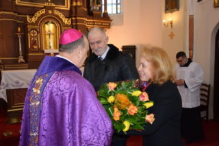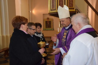 Pasterza diecezji powitała delegacja parafian oraz miejscowy proboszcz ks. kan. Zbigniew Grabowski. Poprosił on ks. Biskupa o pobłogosławienie kościoła i otoczenie modlitwą całej wspólnoty parafialnej, aby wewnętrzna świątynia każdego parafianina na stałe jaśniała pięknością. Ekscelencja odmówił modlitwę pobłogosławienia, po czym pokropił kościół oraz wiernych wodą święconą.