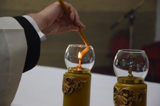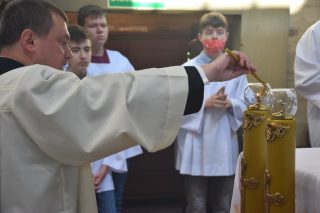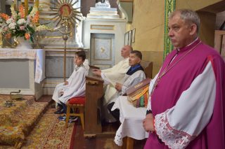 Ołtarz nakryto obrusem, ustawiono świece ołtarzowe, które zapalono od świecy podanej przez Pasterza Diecezji.