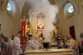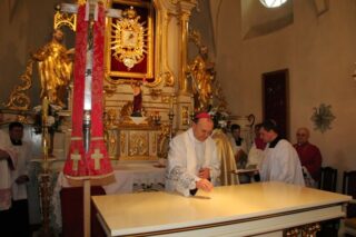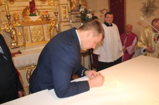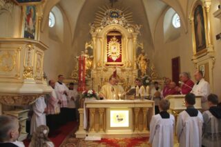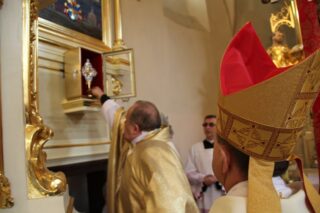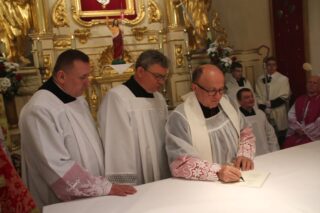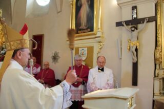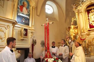 Relikwie św. Jana Pawła II, przekazane parafii od ks. kard. Stanisława Dziwisza, wzniósł do świątyni ks. bp Tadeusz Pikus. On także odmówił modlitwy poświęcenia ambonki, obrazu i ołtarza, który namaścił oraz dokonał pokropienia i okadzenia. Został również odczytany akt przez niego sporządzony, podpisany na ołtarzu przez obecnych kapłanów i przedstawicieli parafii.