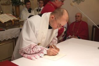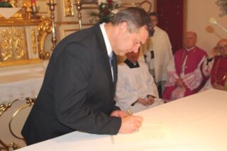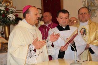 Obecny duszpasterz ks. Antoni Kunicki powiedział : „Gdy św. Jan Paweł II kończył swoją ziemską wędrówkę. Emocje otwierały ludzkie serca i w ten sposób spełniało się marzenie Papieża, które wyraził w swoim duchowym testamencie: „Przyjmując już teraz tę śmierć, ufam, że Chrystus da mi tę łaskę owego ostatniego przejścia, czyli Paschy. Ufam też, że uczyni ją pożyteczną dla jej większej sprawy, której starałem się służyć dla zbawienia ludzi, dla ocalenia rodziny ludzkiej a w niej wszystkich narodów i ludów w śród nich serce w szczególny sposób zwraca się do mojej ziemskiej Ojczyzny.” Na Placu św. Piotra pielgrzymi szeptali ;”Nie zostawiaj nas”. Jest z nami św. Jan Paweł II w relikwii krwi przelanej w zamachu na Jego życie i w wotywnym ołtarzu. Kto łączy się z Ciałem i Krwią Chrystusa, ten łączy się z ołtarzem. Dzisiaj po konsekracji nowego ołtarza będzie sprawowana Najświętsza Ofiara za wszystkich ,którzy przyczynili się do jego powstania. Od ambonki słuchając Słowa Bożego chcemy podejmować dzieło nowej ewangelizacji”