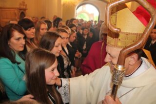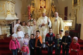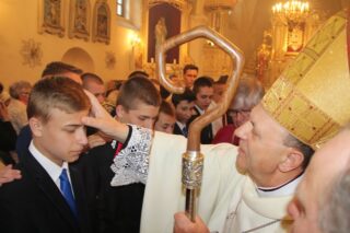 Ks. bp Tadeusz Pikus udzielił sakramentu bierzmowanie grupie młodzieży z parafii Strabla. Podziękował on za widoczne zaangażowanie w stały rozwój wspólnoty parafialnej na czele z jej duszpasterzem. Przypomniał również, że ma on szczególne związki z osobą św. Jana Pawła II, gdyż z jego rąk w 1987 roku w Lublinie przyjął on święcenia kapłańskie.