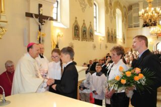 W wygłoszonej homilii Ksiądz Biskup, nawiązując do dbałości o świątynię, której przejawem są dokonane w strabelskim kościele inwestycje mówił: „Gdyby ktoś powiedział, że wystroimy świątynię i na tym kończy się nasza rola, byłby w błędzie. Każda świątynia ma bowiem na celu doprowadzić do tego, aby człowiek stał się świątynia Boga Żywego. Aby zapraszając Boga do swego życia stał się sanktuarium, tak jak Maryja, która przejęła wolę Boga i stała się Jego Matką. Mamy być uczniami i naśladowcami Boga, a będziemy nimi, gdy zachowamy Jego naukę. Umiłuje nas wtedy Bóg Ojciec i Syn Boży, którzy przyjdą, aby zamieszkać w nas.” Przypomniał również, że tę świątynię w nas przygotowuje Duch Święty. „Jeśli tego zabraknie – kontynuował, to można by powtórzyć za jednym z kaznodziejów z Holandii. Będąc w świątyni widział on wielu ludzi. Wiedział jednak jaki jest ich stan ducha, gdyż są takie wspólnoty i kraje, gdzie religia jest, a nie ma Chrystusa, świątynie są, a Chrystus jest z nich wyrzucony. Powiedział wówczas: „Widzę pełen kościół pustych ludzi”. Człowiek jest wtedy pełny, gdy w nim jest Bóg i on jest świątynią.”