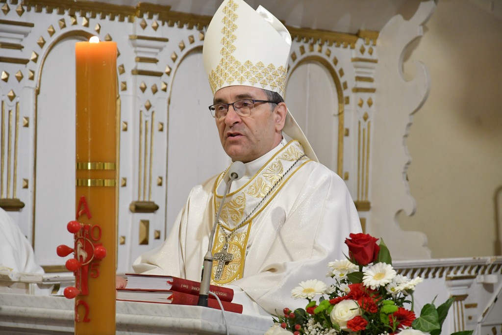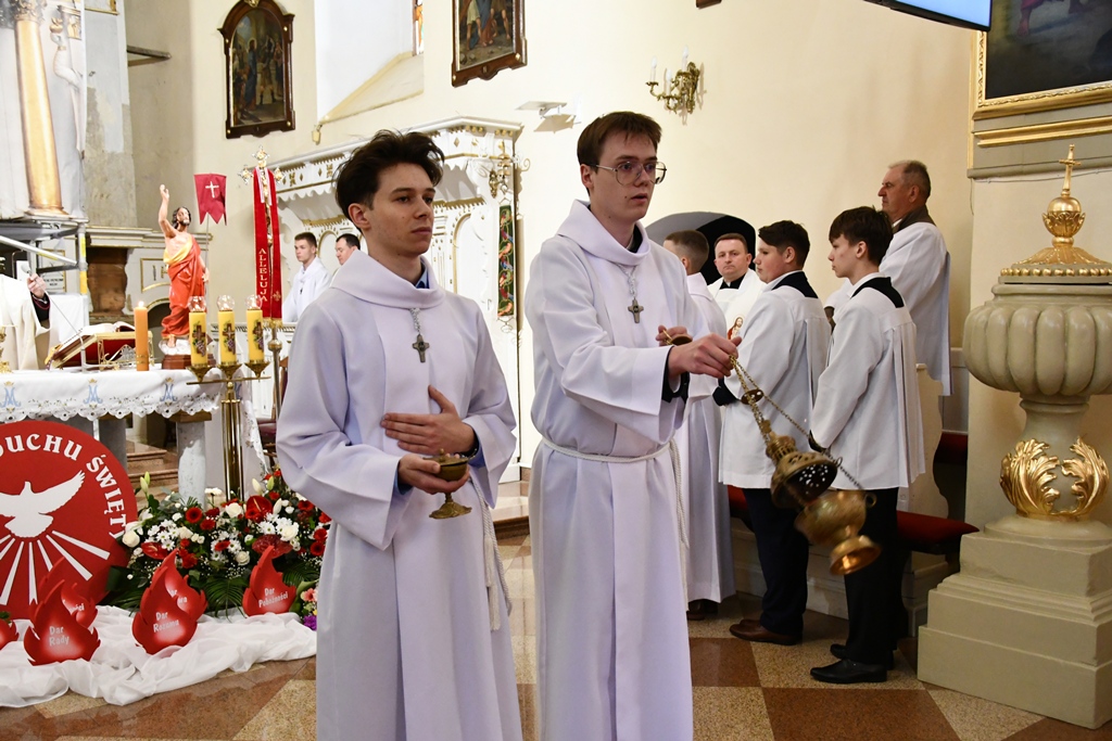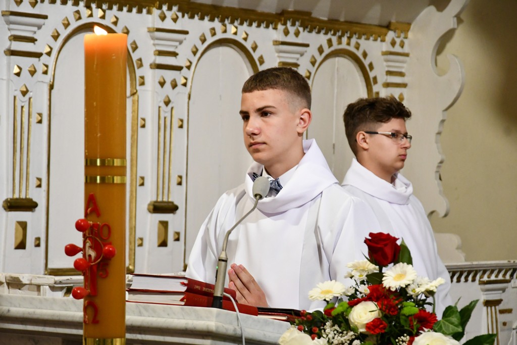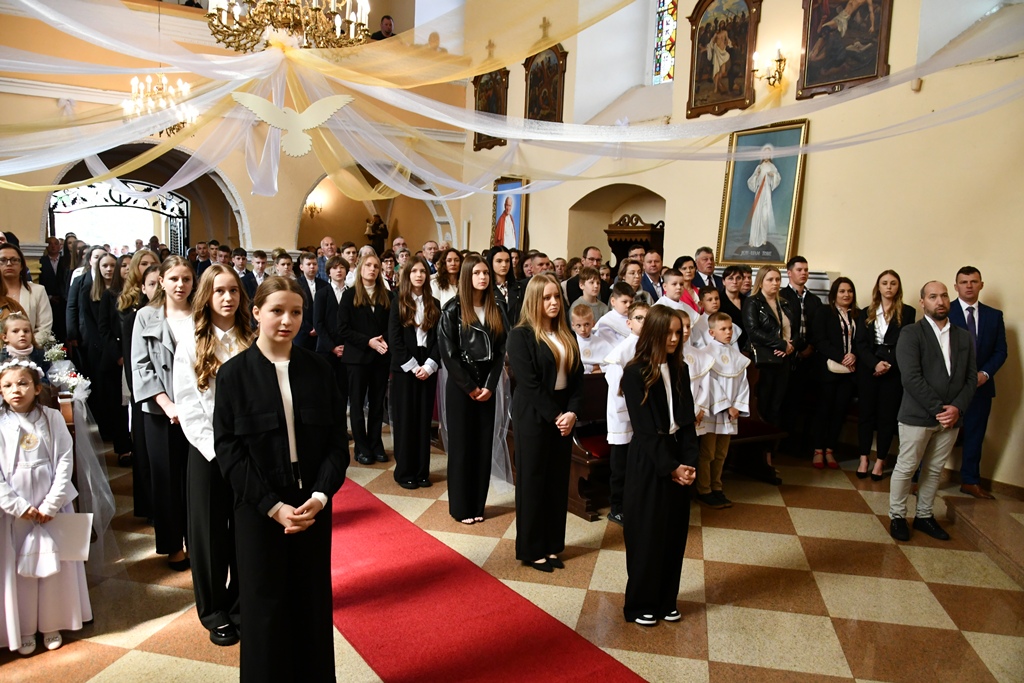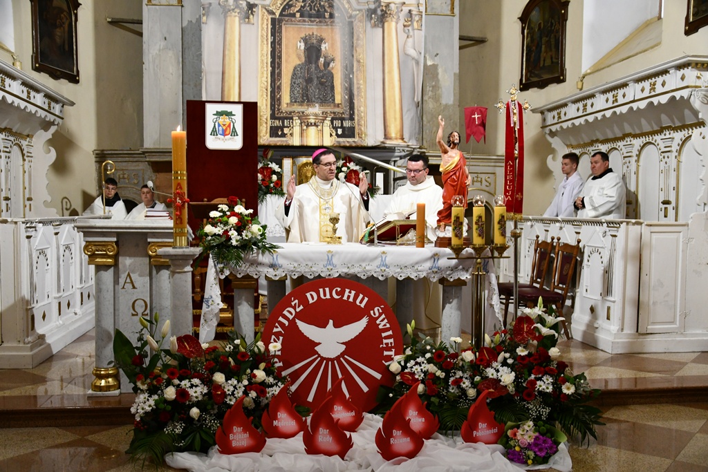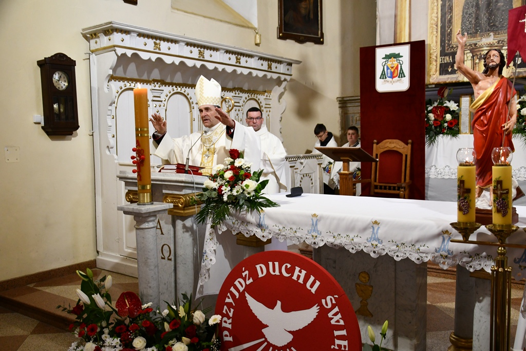 W homilii biskup nawiązał do postaci św. Stanisława. Przypomniał najważniejsze fakty z jego życia oraz nakreślił kontekst społeczny, kulturowy i religijny, w jakim przyszło żyć św. Męczennikowi. Zwrócił uwagę na jego odważną postawę, z jaką stanął wobec wrogo nastawionego do niego króla Bolesława. „Dobry pasterz bezkompromisowo stanął po stronie Chrystusa i ewangelicznej moralności. Jakże potrzebna jest nam wszystkim odwaga św. Stanisława, by stanąć po stronie Ewangelii – prawdziwej Dobrej Nowiny, która mówi, że ten, kto zwiąże się z Chrystusem, choćby i umarł, zachowa życie. Musimy być otwarci na Boga, na Jego słowo i na Jego moc. Musimy mieć też odwagę, by sprzeciwić się złu, by odpowiednio zareagować w obliczu niesprawiedliwych ataków” – powiedział. Nawiązał również do sakramentu bierzmowania. „Przed chwilą wasza młodzież wyraziła pragnienie rozwijania swojej wiary i życia według niej, a wszystko we współpracy i pod przewodnictwem Ducha Świętego. Nawiązujemy do dnia Pięćdziesiątnicy, kiedy to Duch Święty zstąpił po raz pierwszy na Apostołów. Umocnił ich i oświecił, by nie zdradzili swego Pana, ale z wielką gorliwością głosili Ewangelię i położyli podwaliny pod Kościół Chrystusowy. Wy kochani – jak Apostołowie – chcecie umocnić wiarę i oddać swoje młode życie we władanie Ducha Świętego”.