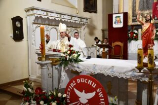 Z racji na odpust parafialny wokół świątyni przeszła procesja Eucharystyczna. Oprócz młodzieży bierzmowanej widoczna była obecność dzieci, które w tym roku przyjęły Pierwszą Komunię Świętą.