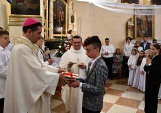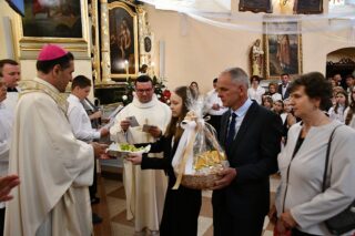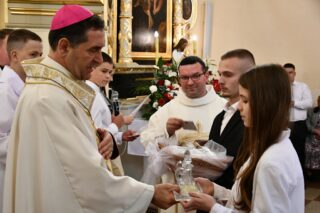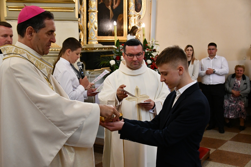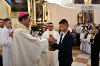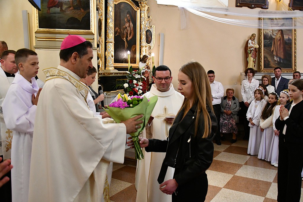 Biskup Piotr Sawczuk 4 maja 2025 r. przewodniczył uroczystej Mszy św. odpustowej w kościele parafialnym w Knychówku, podczas której udzielił sakramentu bierzmowania.