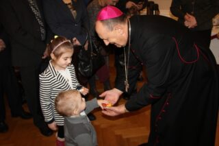 Ksiądz biskup w wygłoszonym przesłaniu powiedział natomiast, że problematyka rodziny jest w tym roku w szczególnie bliska i stała się ona tematem wiodącym kolędowych spotkań z kapłanami w dekanatach diecezji. Podziękował doradcom życia rodzinnego za ich trudną i często wolontarystyczną pracę, dzięki której wiele osób może z większą odwagą wchodzić w życie małżeńskie i rodzinne. Zwrócił uwagę na trudności, z którymi muszą się zmagać w swej pracy. Wynikają one między innymi ze zmiany mentalności dzisiejszego człowieka, którą można określić jako mentalność jednorazowości korzystania z wielu dóbr. Dawniej człowiek je reperował, a dzisiaj wyrzuca i wymienia na nowe. Przenika to także niestety do życia wspólnego, w tym do życia małżeńskiego, gdzie nie próbuje się naprawiać relacji i błędów. Wspomniał także o widocznym braku dojrzałości społecznej pokolenia wcześnie rozwiniętego biologicznego, co skutkuje brakiem konsekwencji w podejmowaniu życiowych decyzji. Mówił też o tolerancji oraz braku wstydu i poczuciu grzechu, które w swej istocie należy rozumieć jako brak poczucia miłości wobec drugiego człowieka. Życzył przybyłym, aby Bóg był nagrodą w ich prawdziwie misyjnej pracy w Kościele.