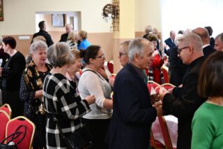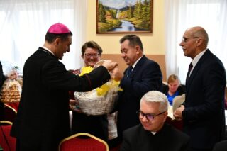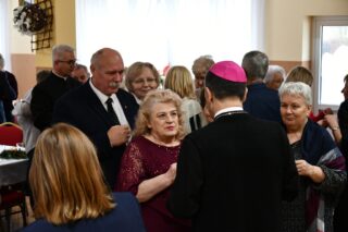 W drugiej części był czas na świąteczne życzenia i wspólny posiłek. W imieniu wszystkich przemówiła prezes Diecezjalnego Instytutu Akcji Katolickiej Maria Dzierżanowska, która złożyła biskupowi świąteczne życzenia. Ubogaceniem spotkania był występ artystów zrzeszonych przy stowarzyszeniu „Perlejewo łączy”. Zaprezentowali oni tradycyjne „Herody”. Rymowane dialogi przeplatane były śpiewem kolęd.
