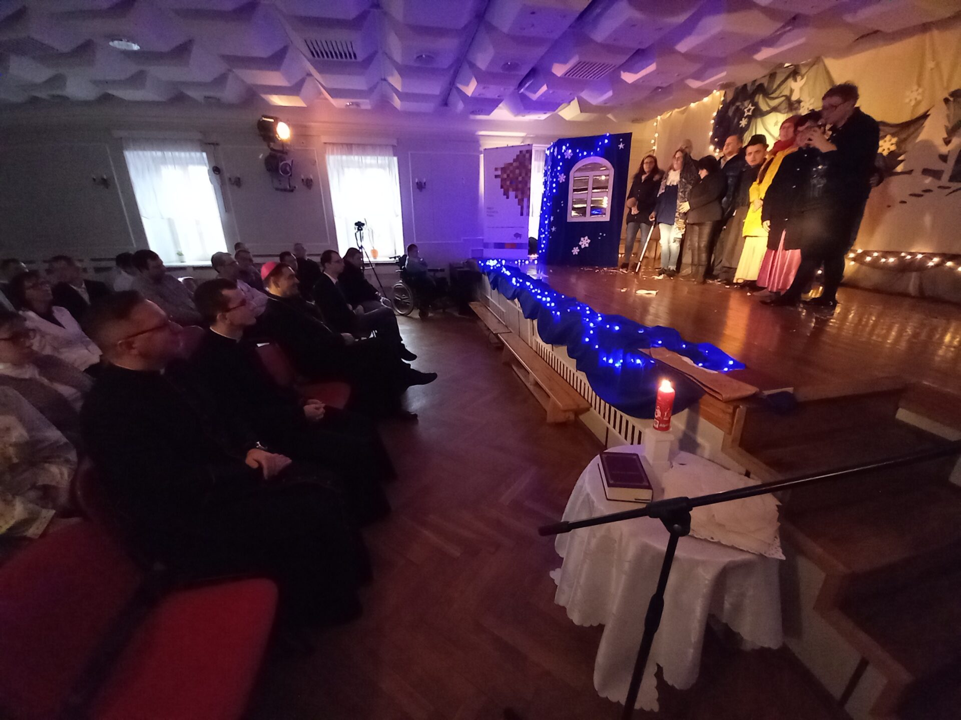 Na wigilii swoją obecnością zaszczycił nas pasterz diecezji drohiczyńskiej bp Piotr Sawczuk. Na wstępie spotkania czcigodnego gościa powitała pani kierownik Warsztatu Terapii Zajęciowej Monika Piotrowska-Śliwińska. Potem odbyła się wystawiona przez uczestników warsztatu inscenizacja na podstawie baśni Hansa Christiana Andersena ,,Prawda o dziewczynce z zapałkami”. Przedstawienie pn. „Prawdziwa historia o dziewczynce z zapałkami- Podlaska Wieczerza Wigilijna ” obyło się w ramach projektu realizowanego przez Caritas Diecezji Drohiczyńskiej wspólnie w Warsztatem Terapii Zajęciowej w Bielsku Podlaskim współfinansowane ze środków Województwa Podlaskiego. Ujmujące wykonanie sztuki spotkało się z pozytywnym odzewem wśród naszych gości i uczestników.