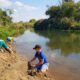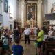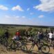 Pierwszy postój zaliczyli w Liwie przy gotyckim zamku i oglądanie neogotyckiego kościoła, w Grodzisku- zwiedzanie potężnego grodziska z X-XIII w., w którym część rowerzystów była po raz pierwszy. Dalej ciężki przejazd niemiłosiernie piaszczystą drogą przez las (ale za to z górki!) do malowniczego Wyszkowa nad Liwcem i zwiedzanie kościoła z 1786 r. Po świątyni (z zachowanym w całości oryginalnym barokowym wyposażeniem – duża rzadkość) oprowadził nas sam ksiądz proboszcz (dziękujemy!). Po drodze oglądanie kapliczek z barokowymi figurami z XVIII w. przedstawiającymi orędowników Wyszkowa: św. Jana Nepomucena i św. Floriana. Trudy (niewielkie) kolejnego odcinka wynagrodziły uczestnikom widoki z Sowiej Góry ostatnio niestety zeszpecone przez gigantyczne turbiny wiatrowe. Ognisko nad rzeką było przyjemnym akcentem oraz czasem do rozmów i integracji. Dzieci chlapały się w płytkiej, ciepłej wodzie, a dorośli piekli kiełbaski. Podwieczorek na trawie urozmaicało nam liczenie kajaków, a tego słonecznego dnia płynęły ich Liwcem całe flotylle. Po odpoczynku przejazd ścieżką przez łąki obok pozostałości średniowiecznego grodziska.