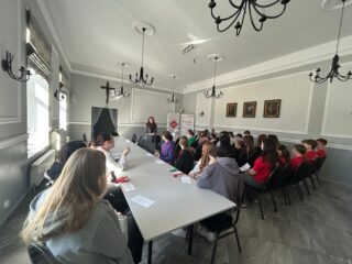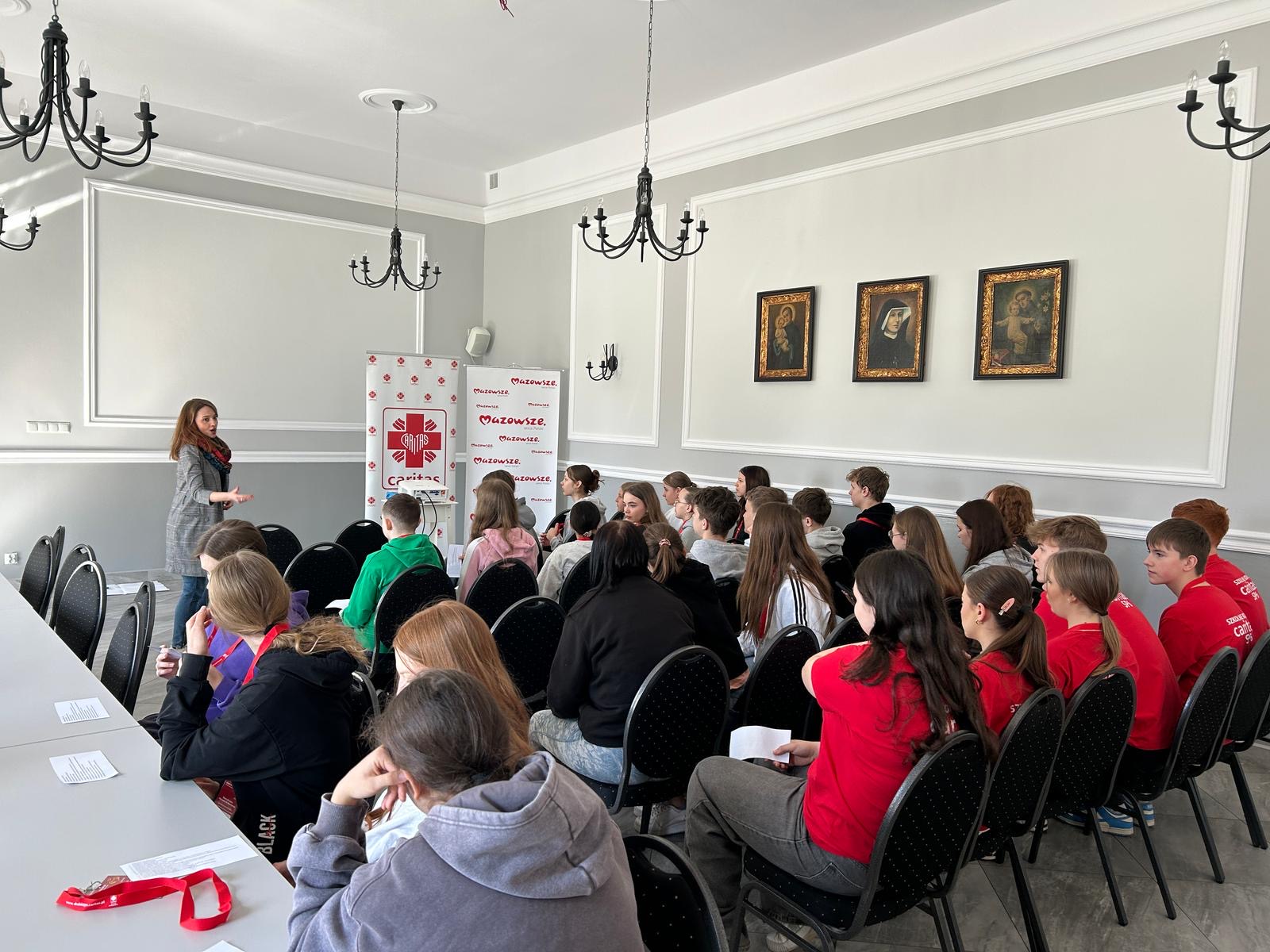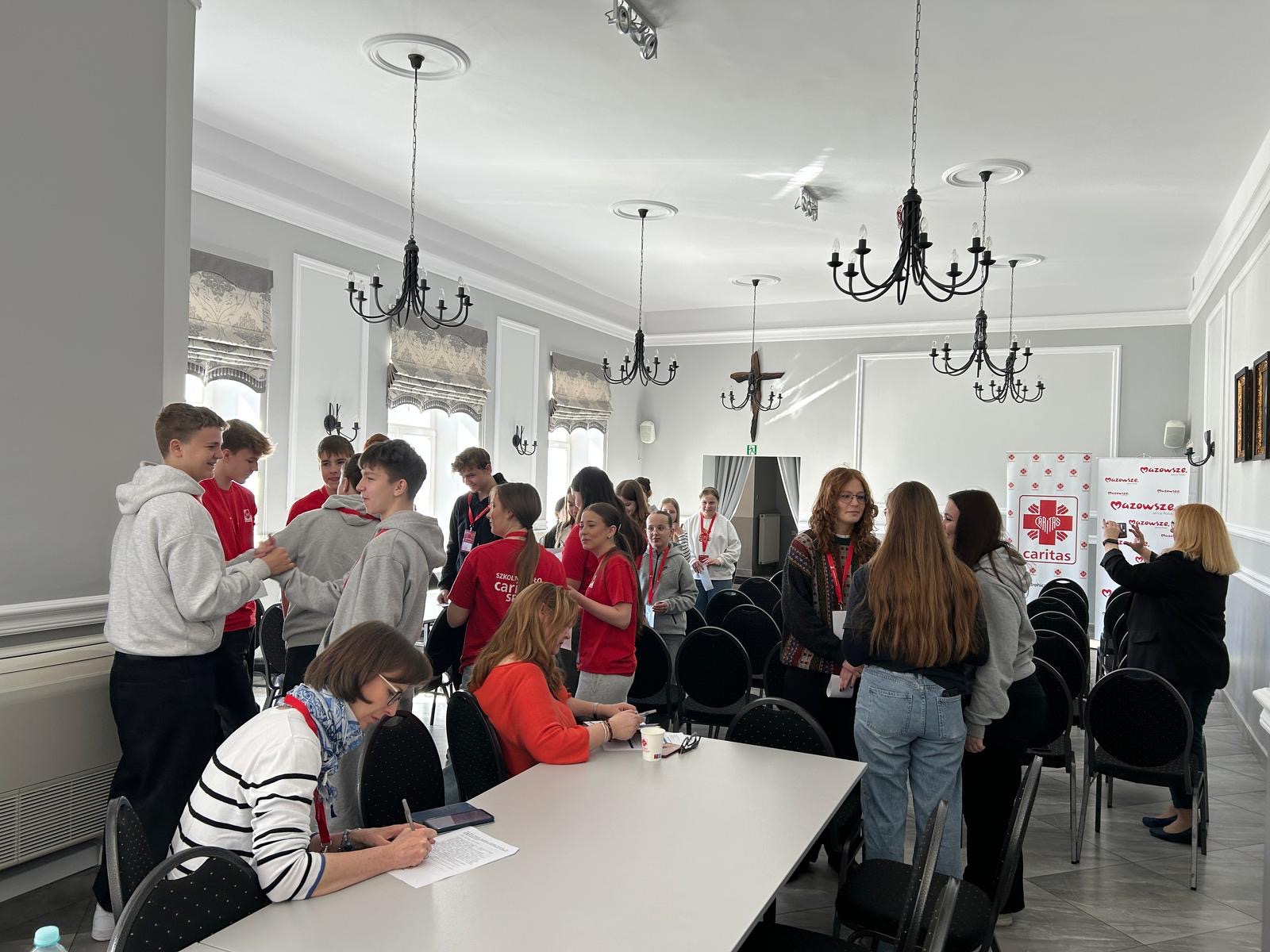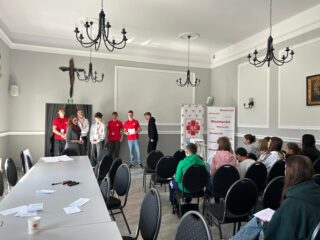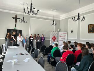 Spotkanie rozpoczęło się przywitaniem wolontariuszy oraz ich opiekunów. W programie znalazło się szkolenie prowadzone przez Panią Katarzynę Osior-Szot z firmy szkoleniowej ,,Centrum Wolontariatu’’, którego celem było zintegrowanie uczestników i wprowadzenie ich w świat wolontariatu. Uczestnicy zostali podzieleni na sześć grup, w których mieli zaledwie 3 minuty na odpowiedzi na sześć kluczowych pytań dotyczących cech dobrego wolontariusza, trudności w wolontariacie, korzyści płynących z działalności oraz kompetencji, które można rozwijać dzięki wolontariatowi. Pomimo ograniczonego czasu, na kartach pojawiło się wiele trafnych i inspirujących odpowiedzi, które wzbogaciły wiedzę uczestników oraz wskazały nowe możliwości zaangażowania. Dodatkowo, każda grupa otrzymała zadanie stworzenia własnego wiersza, kodeksu o wolontariacie, w którym mieli uwiecznić swoje przemyślenia i uczucia związane z tą formą działalności. Wiersze miały być nie tylko kreatywne, ale również refleksyjne, by pokazać, jak wolontariat wpływa na życie zarówno samych wolontariuszy, jak i osób, którym pomagają. W ten sposób, uczestnicy mieli okazję wyrazić siebie i zacieśnić więzi w grupie, tworząc jednocześnie coś wyjątkowego, co mogliby zabrać ze sobą jako pamiątkę.