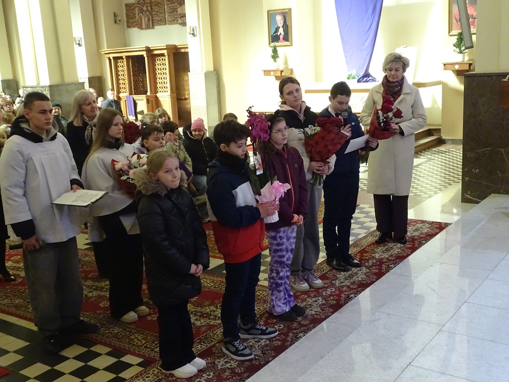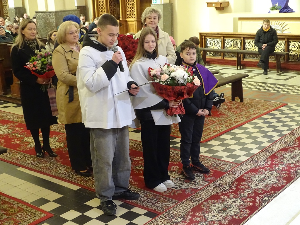 Na zakończenie rekolekcji, podczas Mszy Świętej, o godz. 11.30, Proboszcz Parafii Prostyń Ksiądz kanonik Józef Poskrobko, podziękował Księdzu Rekolekcjoniście, Księdzu Adamowi, za słowa skierowane w Sanktuarium prostyńskim przygotowujące Parafian do Świąt Zmartwychwstania Pańskiego. Podziękowanie skierowały również dzieci i młodzież  wyrażając swoją wdzięczność słowami: