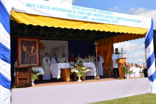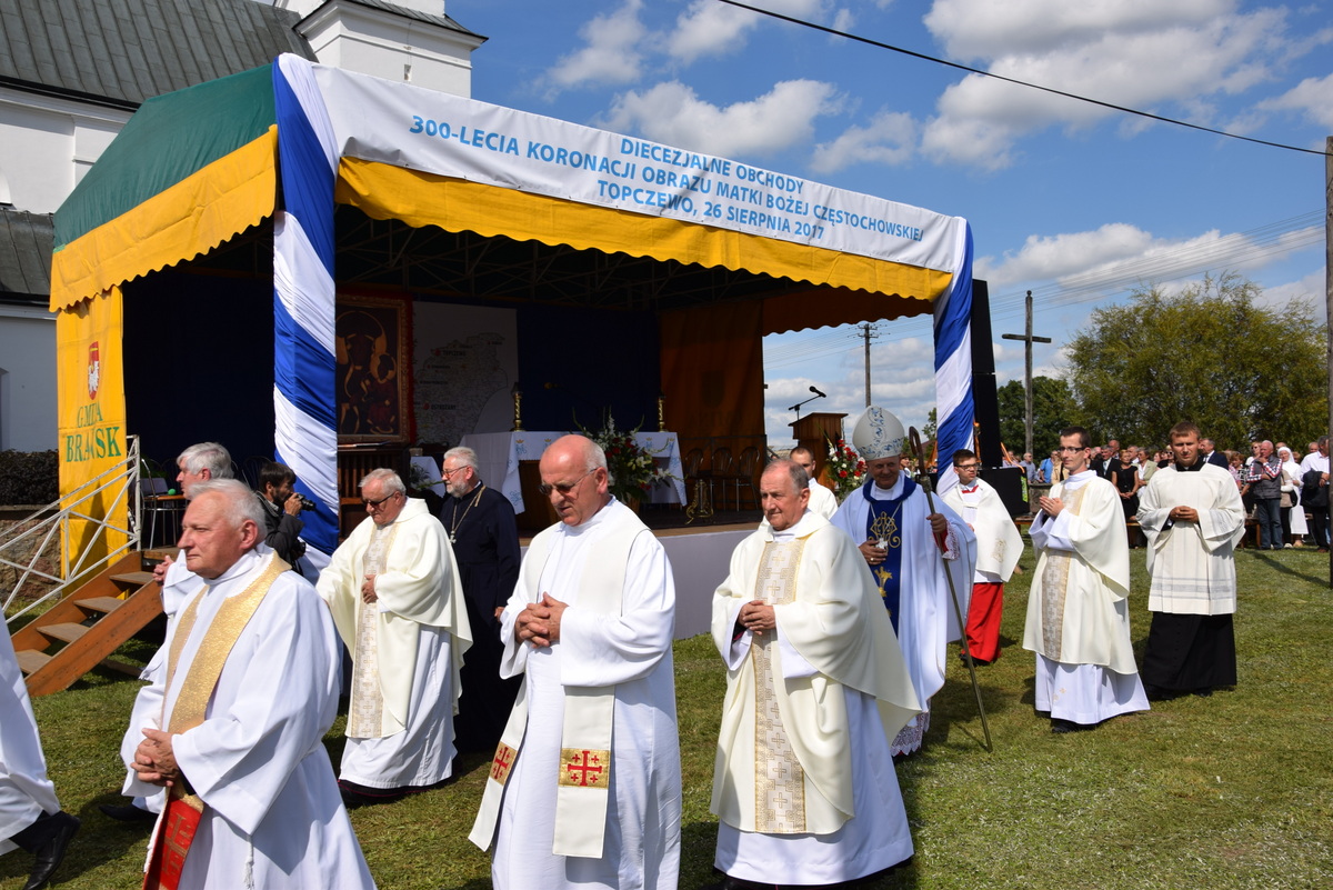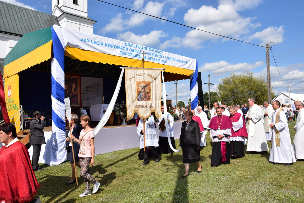 Ponad pięć tysięcy wiernych zgromadziło się 26 sierpnia 2017 r. na placu przykościelnym w Topczewie, aby uczestniczyć w diecezjalnych uroczystościach związanych z trzechsetną rocznicą koronacji Obrazu Matki Boskiej Częstochowskiej.