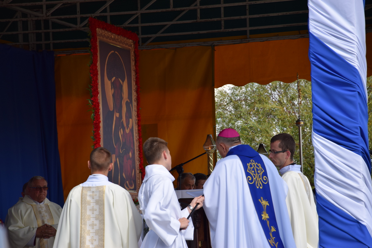 Uroczystej sumie odpustowej o godz. 12:00 przewodniczył ks. bp Tadeusz Pikus. Słowo Boże wygłosił ks. prał. Zbigniew Rostkowski – kanclerz Kurii Diecezjalnej oraz wikariusz generalny diecezji drohiczyńskiej. Kaznodzieja analizując symbolikę gestów cudownego Obrazu Matki Boskiej Częstochowskiej, zwrócił uwagę na wiele spraw życia duchowego, rodzinnego i społecznego. Wskazując na Maryję – Matkę i Nauczycielkę, podkreślił rolę i zadania kobiety, poruszył kwestie dotyczące wychowania młodego pokolenia oraz relacji do drugiego człowieka. Wzywał o porządek i ład moralny oparty na prawdach wiary, nie bojąc się zadawać trudnych pytań. Swoje rozważania, jak klamrą, objął refleksją dotyczącą Matki, która wszystko rozumie i potrafi dostrzec dobro w życiu każdego człowieka.