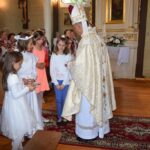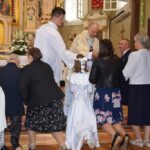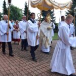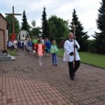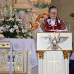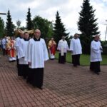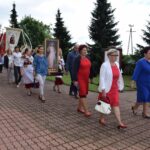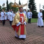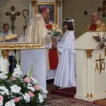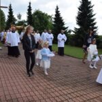 Ks. Walenty Wojtkowski, proboszcz parafii Domanowo, przywitał Ekscelencję oraz przybliżył historię powstania obrazu Matki Bożej Domanowskiej oraz jego dalsze dzieje. Pięknie ubrane dziewczynki, wręczyły ks. bp. Tadeuszowi Pikusowi kwiaty.