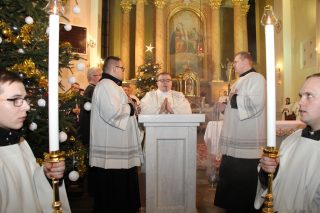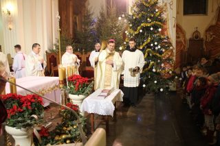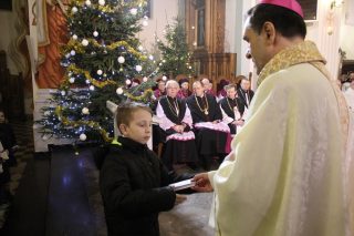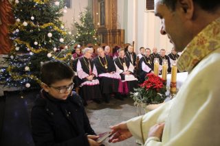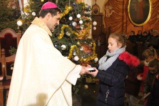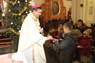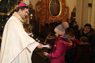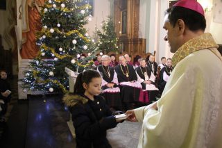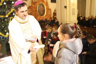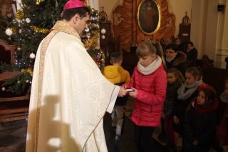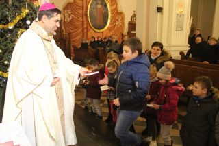Na zakończenie Eucharystii Ekscelencja pobłogosławił i wręczył książeczki do nabożeństwa dzieciom przygotowującym się do przyjęcia sakramentu pierwszej Komunii Świętej.