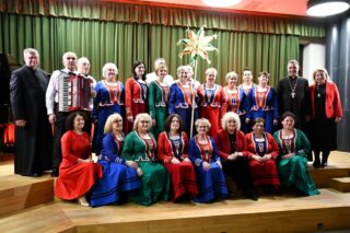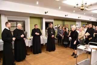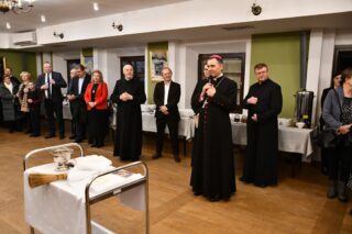 Na zakończenie biskup spotkał się i przekazał słowa pozdrowień członkom Zespołu Ludowego Miedzenianki oraz Grupy Muzycznej Miedzenianeczki, którzy tego dnia wystąpili z koncertem kolęd w Centrum Dialogu Kultur.