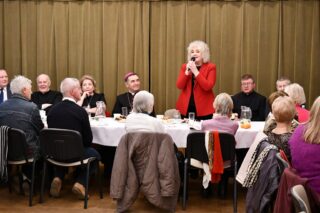 Druga część miała miejsce przy wspólnym stole. Słowa powitań i wdzięczności skierowała Janina Giers – główna organizatorka spotkania. Nie zabrakło obecności przedstawicieli władz parlamentarnych i samorządowych. Głos zabrała poseł Maria Koc, senator Maciej Górski oraz starosta powiatu węgrowskiego Ewa Besztak. Zwracali oni uwagę na wartości religijne i patriotyczne promowane przez środowisko Radia Maryja, które dziś szczególnie wymagają troski i właściwej promocji, a które narażone są na różnorodne niebezpieczeństwa.