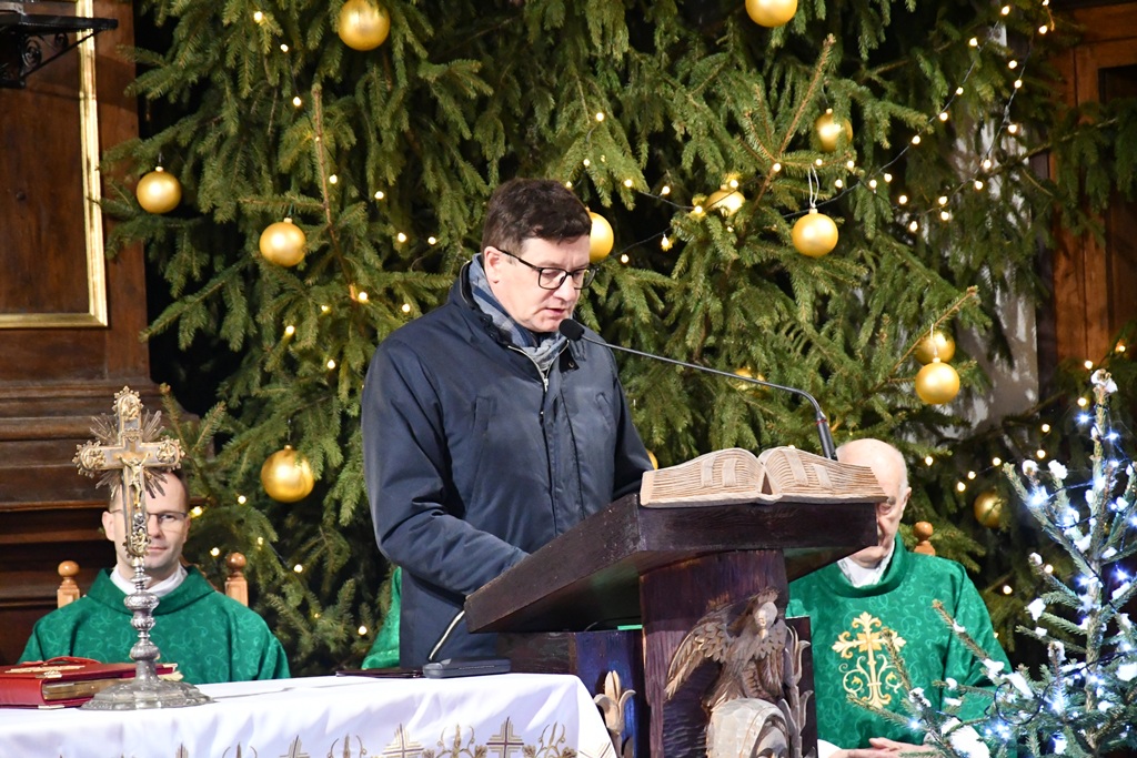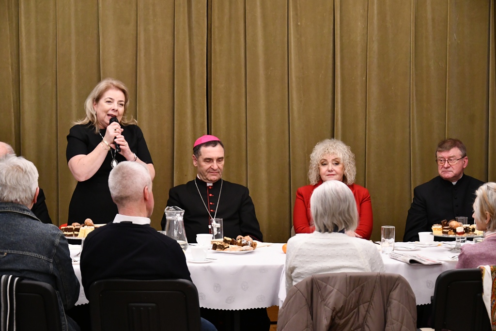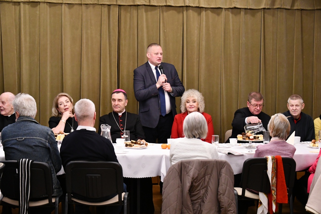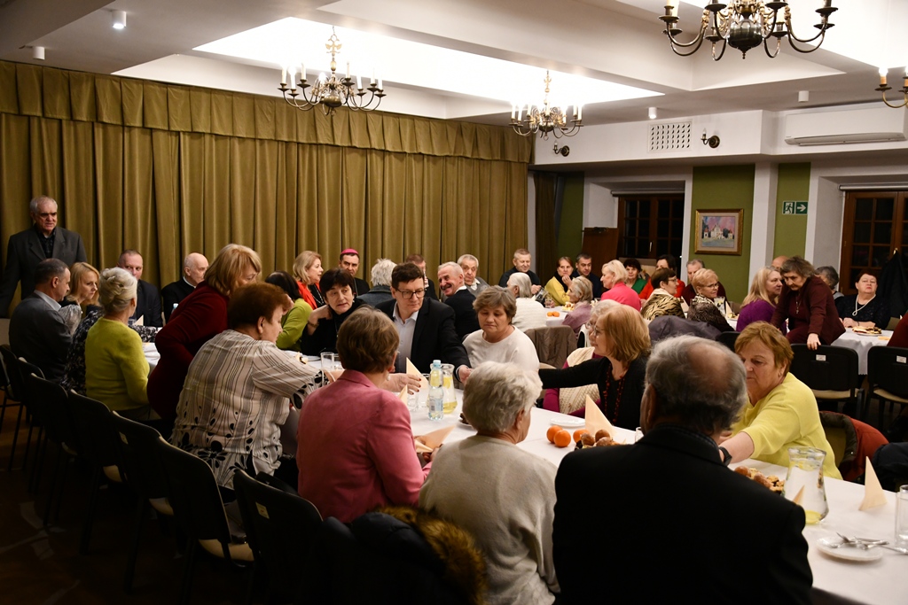 Na zakończenie biskup spotkał się i przekazał słowa pozdrowień członkom Zespołu Ludowego Miedzenianki oraz Grupy Muzycznej Miedzenianeczki, którzy tego dnia wystąpili z koncertem kolęd w Centrum Dialogu Kultur.