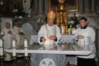 20 czerwca w Sanktuarium w Łazówku bp Tadeusz Pikus udzielił święceń prezbiteratu: ks. Krzysztofowi Nagórnemu z parafii Dołubowo, ks. Emilowi Skoblowi z parafii Rudka oraz ks. Łukaszowi Wojewódzkiemu z parafii Łazówek.