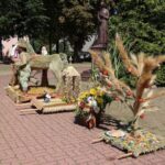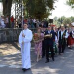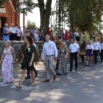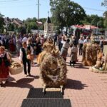 Po Eucharystii przed świątynią ustawił się korowód z wieńcami dożynkowymi, który przemaszerował na plac za kościołem na dalszą część uroczystości, podczas których odbyło się tradycyjne dzielenie chlebem. Był to symboliczny gest wdzięczności za zebrane plony, a także wyraz wspólnoty i gościnności.