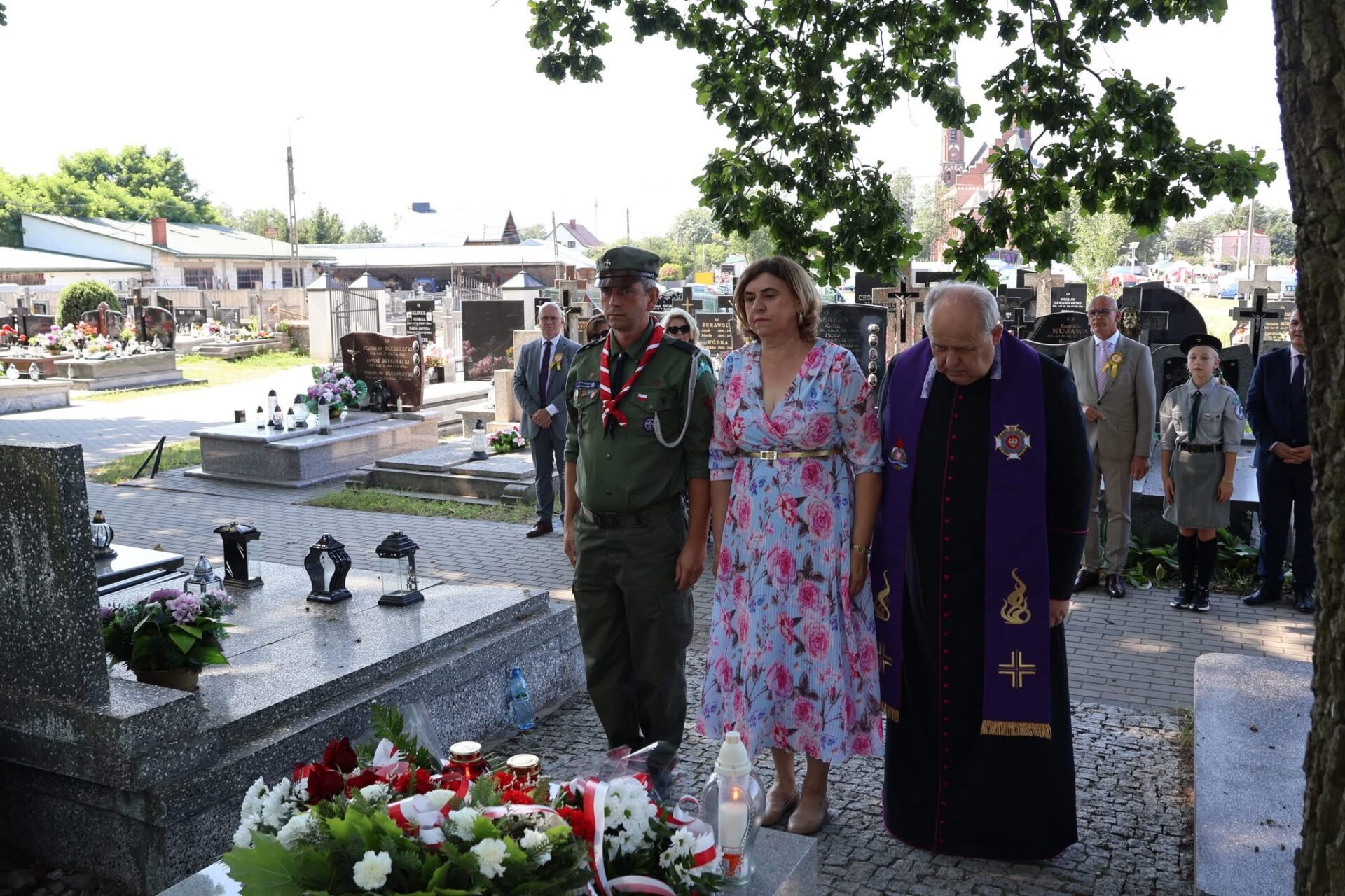 Tego dnia w Kościele obchodzona jest uroczystość Wniebowzięcia Najświętszej Maryi Panny, tzw. Matki Boskiej Zielnej. Święto to jest dobrym czasem na podziękowanie za plony oraz ciężką pracę rolników. Z racji 105. rocznicy „Cudu nad Wisłą” oraz święta Wojska Polskiego, przed Eucharystią delegacje udały się na cmentarz parafialny, aby oddać hołd pamięci żołnierzom Wojska Polskiego. Wartę podczas składnia kwiatów pełnili harcerze ze 123 DH „Włóczykije”.