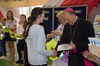 „Jeśli chcesz doznać łaski, jedź do Prostyni” – to tytuł konkursu, którego rozstrzygnięcie odbyło się 11 czerwca 2018 r. w Szkole Podstawowej w Prostyni. Gościem honorowym był ks. bp Tadeusz Pikus.