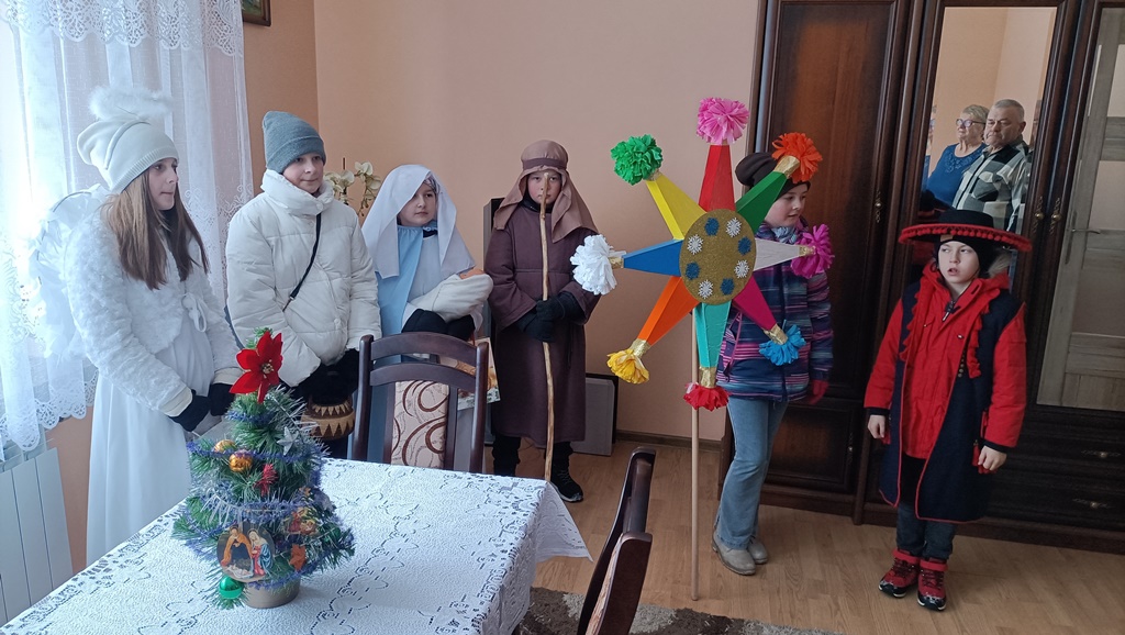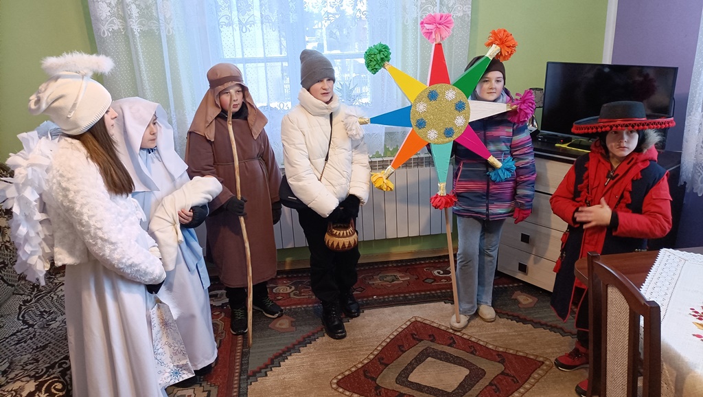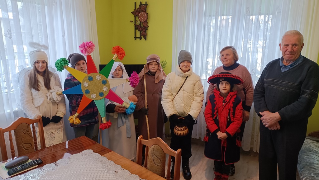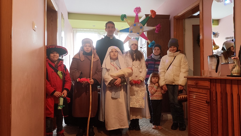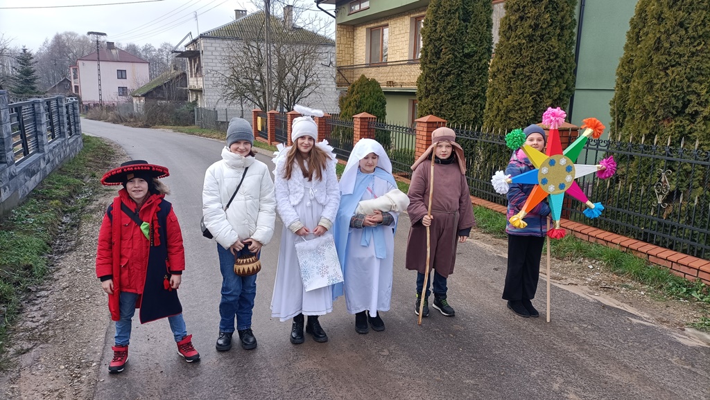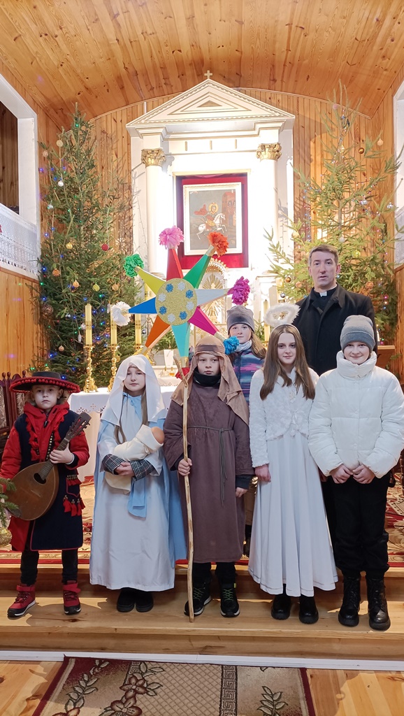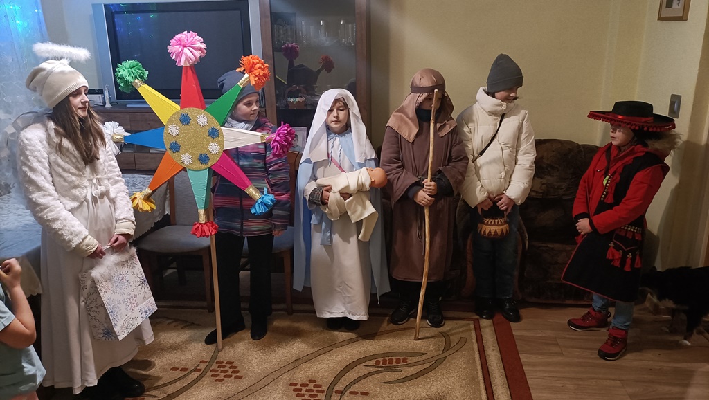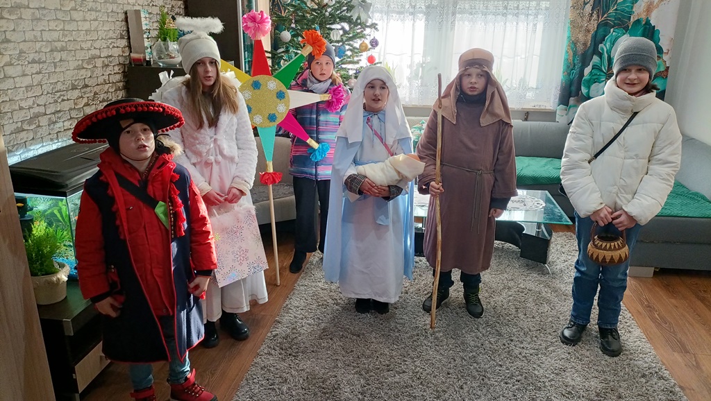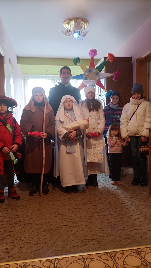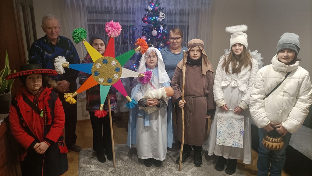 Nasze kolędowanie rozpoczęliśmy 26 grudnia uroczystym posłaniem w naszym kościele. Z wielkim entuzjazmem, pomimo deszczu i mrozu, odwiedzamy nasze rodziny i głosimy radość z narodzin Pana Jezusa. 9 stycznia kolędowaliśmy w Szkole Podstawowej w Wyrozębach-Podawcach. Opowiadając o życiu dzieci w Kolumbii, uświadamiamy wszystkim, że Kościół nie kończy się w parafii, ale mamy braci i siostry na całym świecie. Każdy ochrzczony jest odpowiedzialny, by każdy człowiek usłyszał Ewangelię Chrystusa i żył w warunkach pozwalających im na wzrost, rozwój i życie godne dziecka Bożego. Nasze kolędowanie zakończymy w niedzielę 14 stycznia, ponieważ chcemy odwiedzić jak najwięcej rodzin.