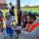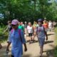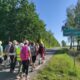 Pątnicy ruszyli w drogę o godz. 7.00 rano, z modlitwą i śpiewem na ustach dotarli do Tołwina, tu był pierwszy postój. W Tołwinie uczestnicy pielgrzymki pierwsze kroki skierowali do kaplicy pw. Św. Maksymiliana Marii Kolbego, po chwili wspólnej modlitwy ucałowali relikwie świętego, które przed rokiem uroczyście zainstalowano w tym miejscu. W gościnnej wsi mieszkańcy czekali na pielgrzymów z pysznym śniadaniem i dobrym słowem. Posileni i umocnieni wędrowcy ruszyli dalej, tu znowu mogli liczyć na wsparcie mieszkańców Tołwina, którzy odprowadzili grupę wskazując drogę z daleka od hałasu i ruchu samochodowego. Idą leśnymi ścieżynami zaśpiewano Godzinki, modlono się też czterema tajemnicami różańca. Przy kolejnym z mijanych domostw pątnicy znów mogli liczyć na pomoc i wodę, bez której w upalny dzień nie sposób było maszerować.