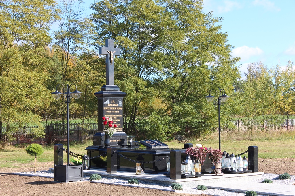 Po Eucharystii cała wspólnota spotkała się na cmentarzu parafialnym, gdzie spoczywa śp. ks. Henryk Nowak. Teraz w miejscu pochówku wzniesiono nagrobek. Pomnik powstał staraniem parafian, przy szczególnym zaangażowaniu Komitetu Budowy Nagrobka. Prezydium komitetu tworzyli: Krystyna Niewiarowska, Stanisław Morzy, Janusz Iwański.