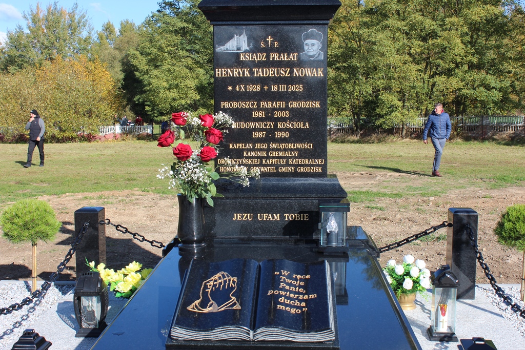 Śp. prał. ks. Henryk Nowak proboszczem w Grodzisku koło Siemiatycz był przez 22 lata. W tym czasie zapisał się w pamięci i w sercach tutejszych parafian. Gdy zmarł 18 marca bieżącego roku, w Grodzisku odbyły się uroczystości pogrzebowe kapłana. Tutaj jego ciało spoczęło na cmentarzu parafialnym. Po kilku miesiącach wdzięczni parafianie oddali hołd pamięci swojemu dawnemu proboszczowi, budując mu nagrobek.