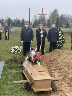 Uroczystość rozpoczęła się o godz. 11.30 na nowym cmentarzu katolickim w Bielsku Podlaskim. W towarzystwie rodziny, kapłanów i przedstawicieli parafian, ks. bp Piotr Sawczuk poprowadził modlitwy nad ciałem zmarłego Kapłana.