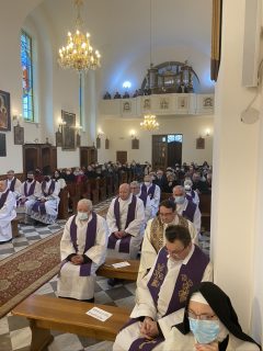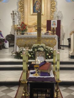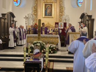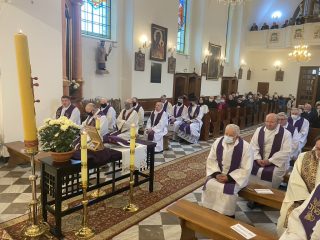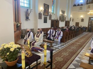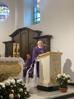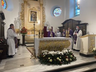 Następnie wszyscy udali się do kościoła pw. Matki Bożej z Góry Karmel, w którym od 2014 roku jako emeryt posługiwał ksiądz Bogdan. Eucharystia, mimo ograniczeń epidemiologicznych, zgromadziła około 30 kapłanów i liczną reprezentację tutejszych parafian.
