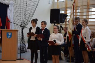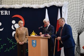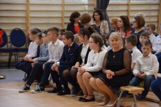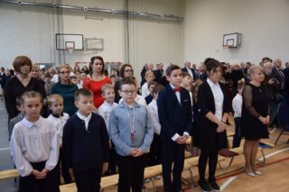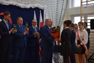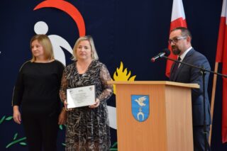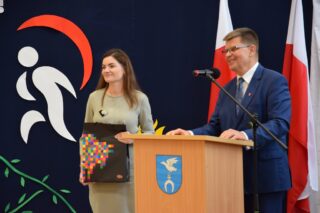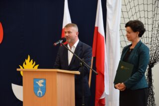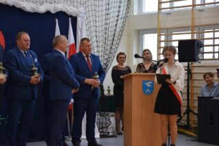 Zaproszeni goście mieli okazję wyrazić słowa wdzięczności i uznania, które składali na ręce dyrektora szkoły oraz wójta gminy Wyszki Mariusza Korzeniewskiego.