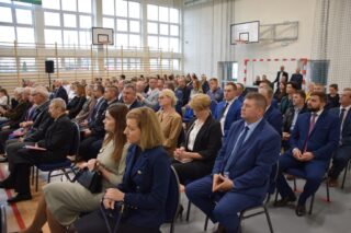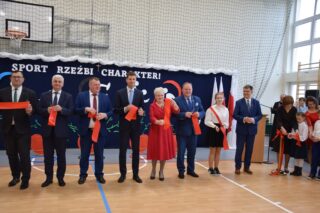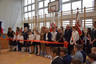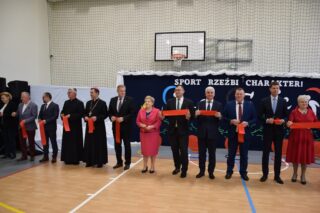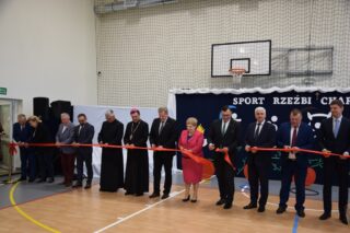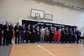 Po przejściu do nowo wybudowanej sali gimnastycznej zaproszeni goście dokonali przecięcia wstęgi, co symbolizowało otwarcie obiektu sportowego. Po odmówieniu specjalnej modlitwy biskup poświęcił salę.