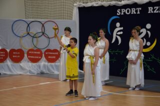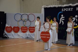 Uczniowie zaprezentowali część artystyczną, która nawiązywała do tradycji olimpijskich. Przypomniała zasady i wartości zdrowej rywalizacji sportowej. Niektórzy zaprezentowali swoje zdolności sportowe.